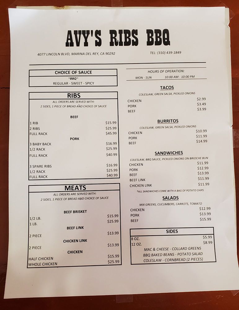 Welcome to Avy’s Ribs, a hidden gem in Marina del Rey that promises a culinary experience to tantalize your taste buds. Specializing in BBQ and Mexican cuisine, Avy’s Ribs offers a mouthwatering selection where the ribs are the star of the show—falling off the bone, juicy, and perfectly seasoned, as echoed by delighted patrons like Lori F. and Mayra S.